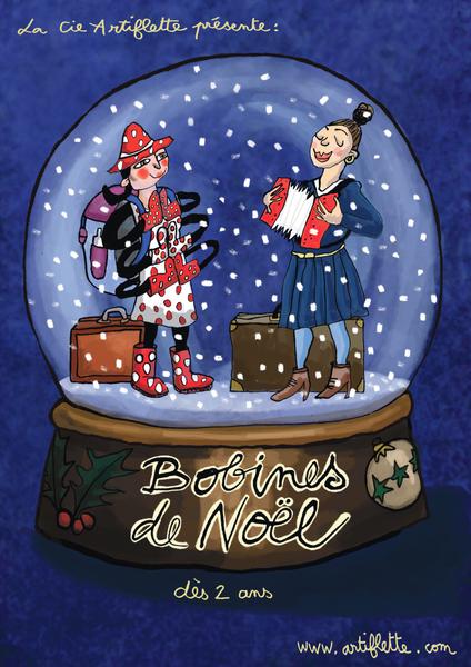 Dans Bobines de Noël, Lucette et Marie-Renée rentrent d’un grand voyage. Elles ont parcouru le monde à la recherche de nouvelles chansons et de nouvelles histoires. Les voilà qui tiennent leur stand au Marché de Noël ! Préparez-vous à repartir avec les oreilles chargées de cadeaux ! Ces 2 espiègles ont plus d’un tour dans leurs valises.