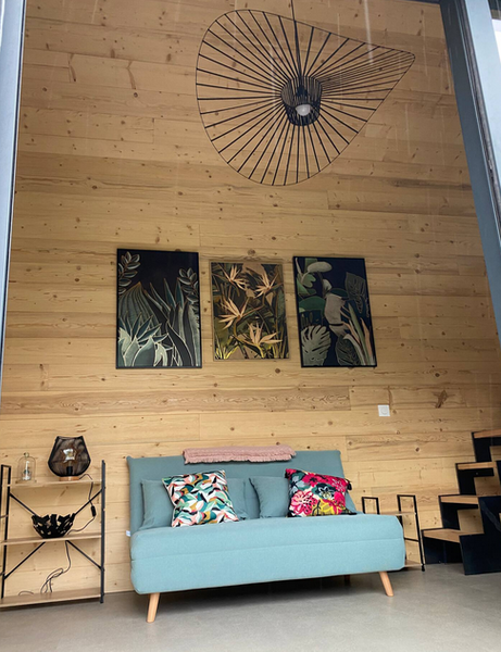 Bienvenue au “Ti’ Nid”, petit chalet de charme en bois brûlé de 20m2 tout neuf tout juste sorti du nid.